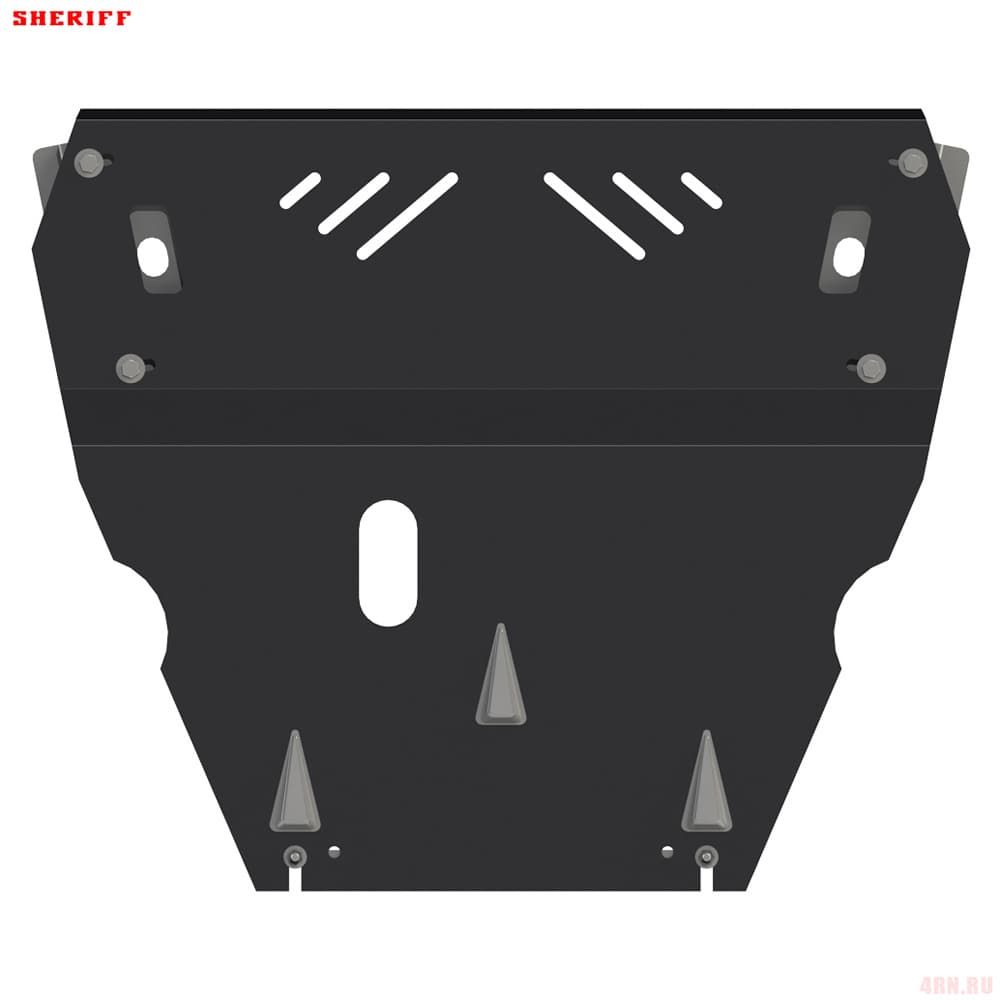 Защита картера Sheriff нужна для сохранности узлов и агрегатов, находящихся на днище авто. Она надежно защитит двигательный отсек вашей машины от повреждений. Также она защищает моторный отсек от влаги, грязи, и предусматривает наличие металлических крыльев, которые выполняют функцию пыльника.