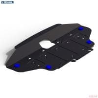 Порошковое окрашивание гарантирует долгий срок службы. А глубокий штамп увеличивает жесткость до 2,5 раз. Также имеется утопленный крепеж для предотвращения срывов. Качественная покраска защиты картера выдерживает 720 часов соляного тумана. Толщина изделия составляет 2-6 мм. Подштамповка в местах крепления предохраняет крепеж от срезания. Деталь спроектирована индивидуально для вашего автомобиля, что позволяет устанавливать ее в штатные места без доработки кузова за 10 мин.