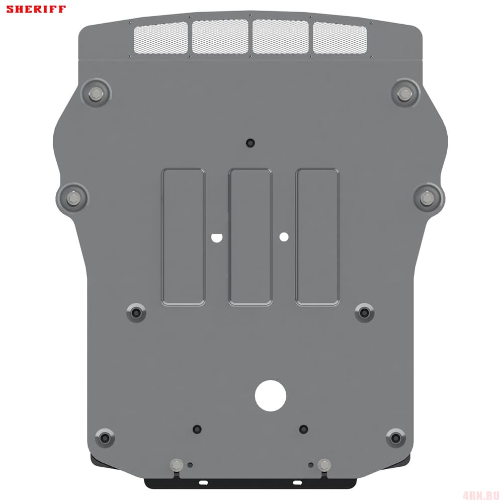 Защита картера Sheriff нужна для сохранности узлов и агрегатов, находящихся на днище авто. Она надежно защитит двигательный отсек вашего автомобиля от повреждений. Также она защищает моторный отсек от влаги и грязи, и предусматривает наличие металлических крыльев, которые выполняют функцию пыльника.