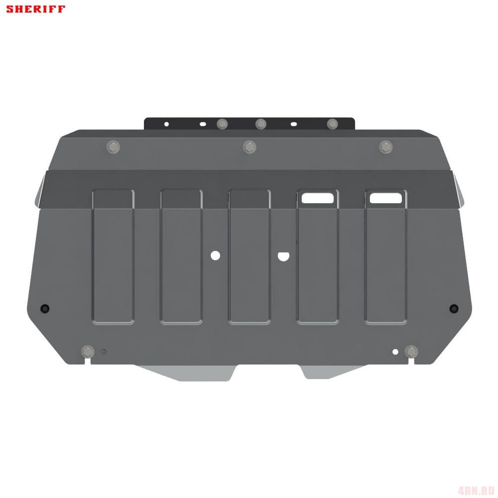 Защита картера Sheriff нужна для сохранности узлов и агрегатов, находящихся на днище авто. Она надежно защитит двигательный отсек вашего автомобиля от повреждений. Также она защищает моторный отсек от влаги и грязи, и предусматривает наличие металлических крыльев, которые выполняют функцию пыльника.