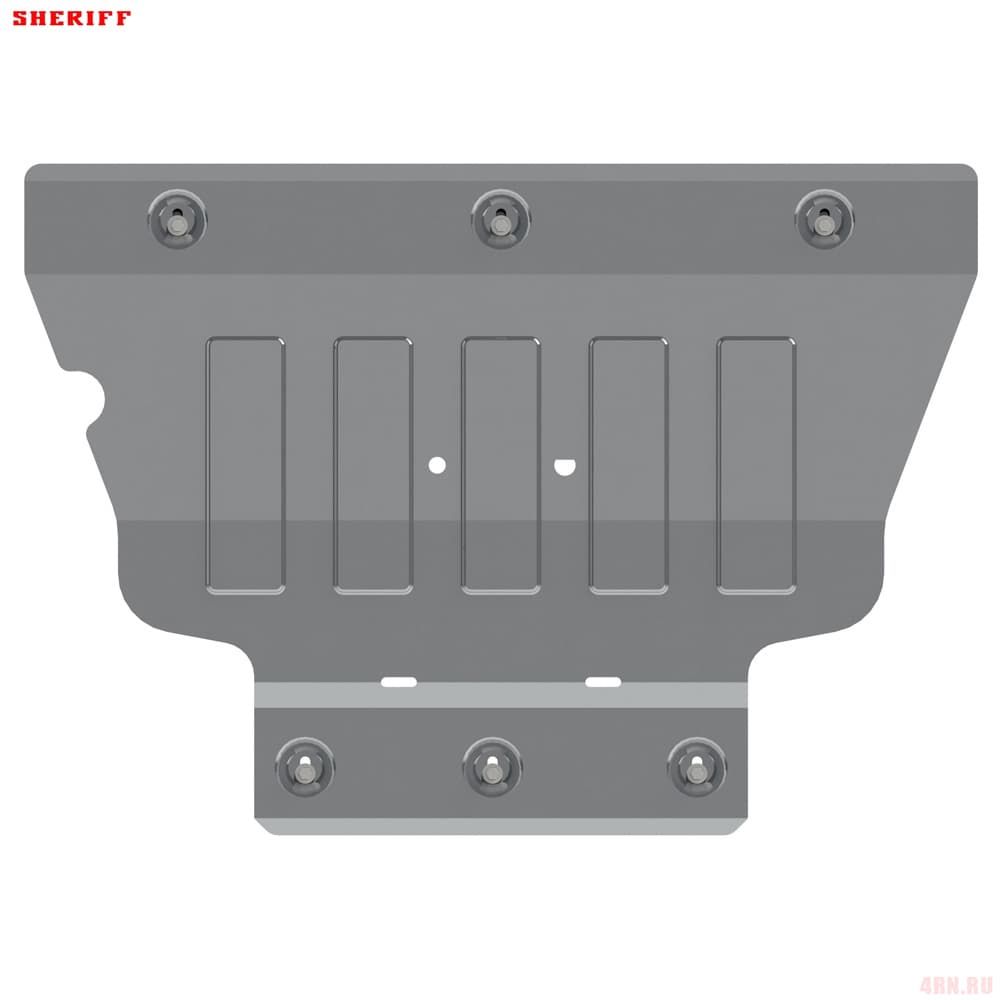 Защита картера Sheriff нужна для сохранности узлов и агрегатов, находящихся на днище авто. Она надежно защитит двигательный отсек вашего автомобиля от повреждений. Также она защищает моторный отсек от влаги и грязи, и предусматривает наличие металлических крыльев, которые выполняют функцию пыльника.