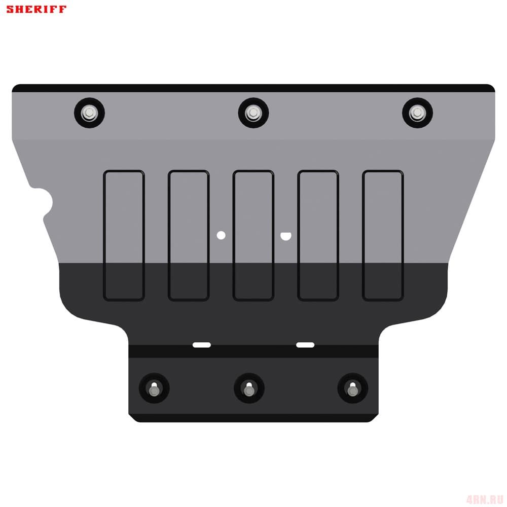 Защита картера Sheriff нужна для сохранности узлов и агрегатов, находящихся на днище авто. Она надежно защитит двигательный отсек вашей машины от повреждений. Также она защищает моторный отсек от влаги, грязи, и предусматривает наличие металлических крыльев, которые выполняют функцию пыльника.