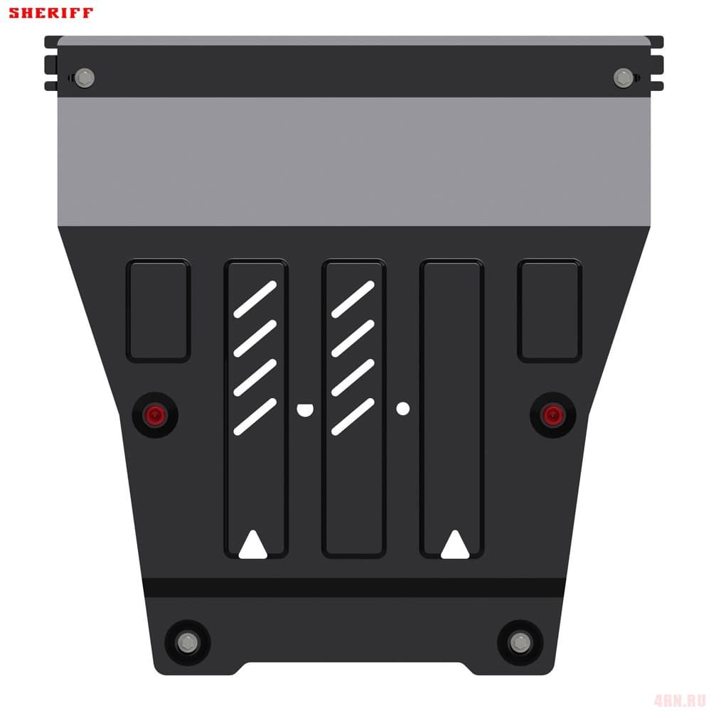 Защита картера Sheriff нужна для сохранности узлов и агрегатов, находящихся на днище авто. Она надежно защитит двигательный отсек вашей машины от повреждений. Также она защищает моторный отсек от влаги, грязи, и предусматривает наличие металлических крыльев, которые выполняют функцию пыльника.