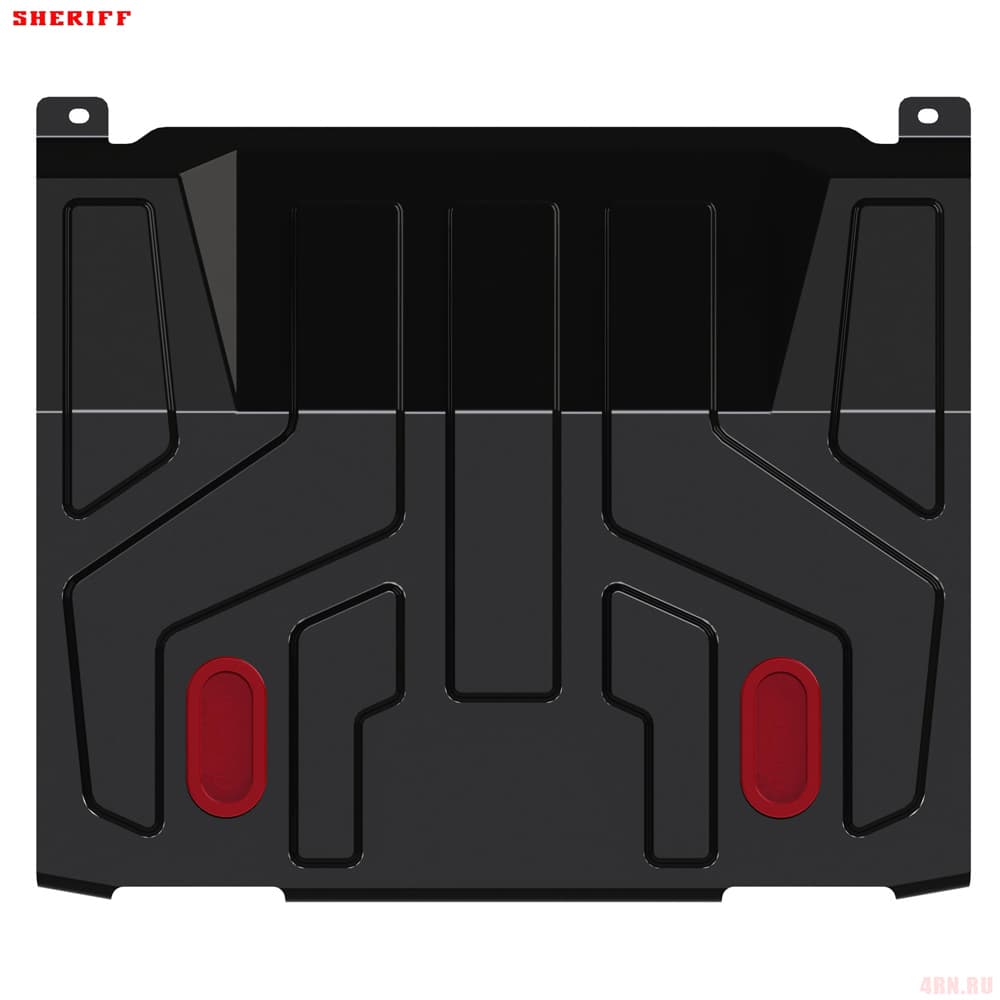 Защита картера Sheriff нужна для сохранности узлов и агрегатов, находящихся на днище авто. Она надежно защитит двигательный отсек вашей машины от повреждений. Также она защищает моторный отсек от влаги, грязи, и предусматривает наличие металлических крыльев, которые выполняют функцию пыльника.