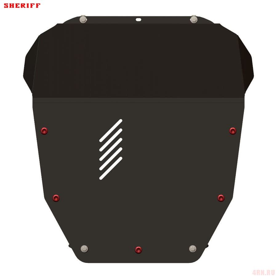 Защита картера Sheriff нужна для сохранности узлов и агрегатов, находящихся на днище авто. Она надежно защитит двигательный отсек вашей машины от повреждений. Также она защищает моторный отсек от влаги, грязи, и предусматривает наличие металлических крыльев, которые выполняют функцию пыльника.