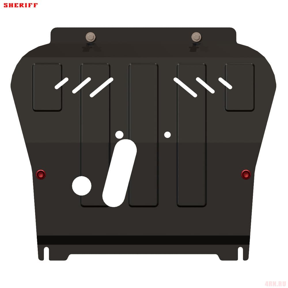 Защита картера Sheriff нужна для сохранности узлов и агрегатов, находящихся на днище авто. Она надежно защитит двигательный отсек вашей машины от повреждений. Также она защищает моторный отсек от влаги, грязи, и предусматривает наличие металлических крыльев, которые выполняют функцию пыльника.