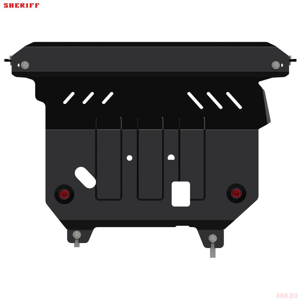 Защита картера Sheriff нужна для сохранности узлов и агрегатов, находящихся на днище авто. Она надежно защитит двигательный отсек вашей машины от повреждений. Также она защищает моторный отсек от влаги, грязи, и предусматривает наличие металлических крыльев, которые выполняют функцию пыльника.