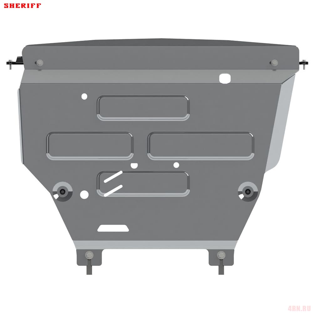 Защита картера Sheriff нужна для сохранности узлов и агрегатов, находящихся на днище авто. Она надежно защитит двигательный отсек вашего автомобиля от повреждений. Также она защищает моторный отсек от влаги и грязи, и предусматривает наличие металлических крыльев, которые выполняют функцию пыльника.