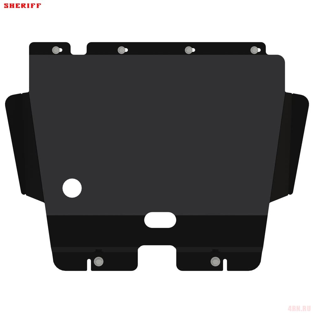 Защита картера Sheriff нужна для сохранности узлов и агрегатов, находящихся на днище авто. Она надежно защитит двигательный отсек вашей машины от повреждений. Также она защищает моторный отсек от влаги, грязи, и предусматривает наличие металлических крыльев, которые выполняют функцию пыльника.