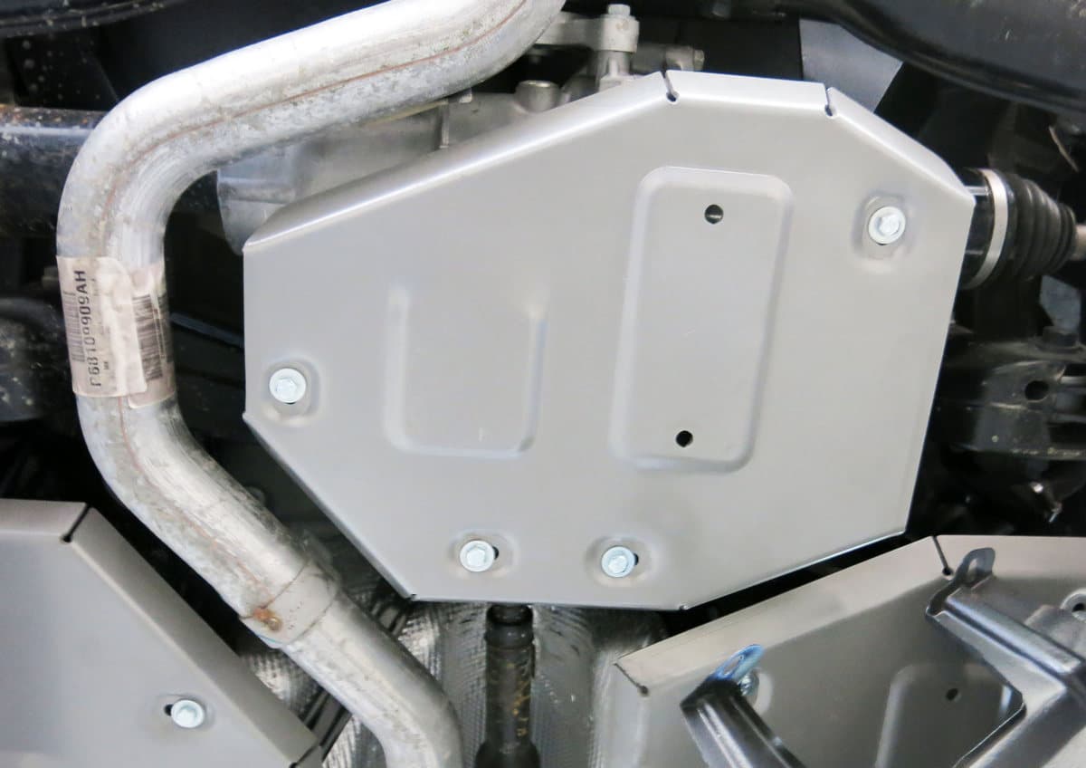 Стойкое порошковое окрашивание позволяет сохранить внешний вид, защитит от царапин, предотвратит коррозию. Также имеется утопленный крепеж для предотвращения срывов. Крепеж не образует с алюминием гальваническую пару. Защита спроектирована индивидуально для автомобиля, что позволяет устанавливать ее в штатные места без доработки кузова за 10 мин.