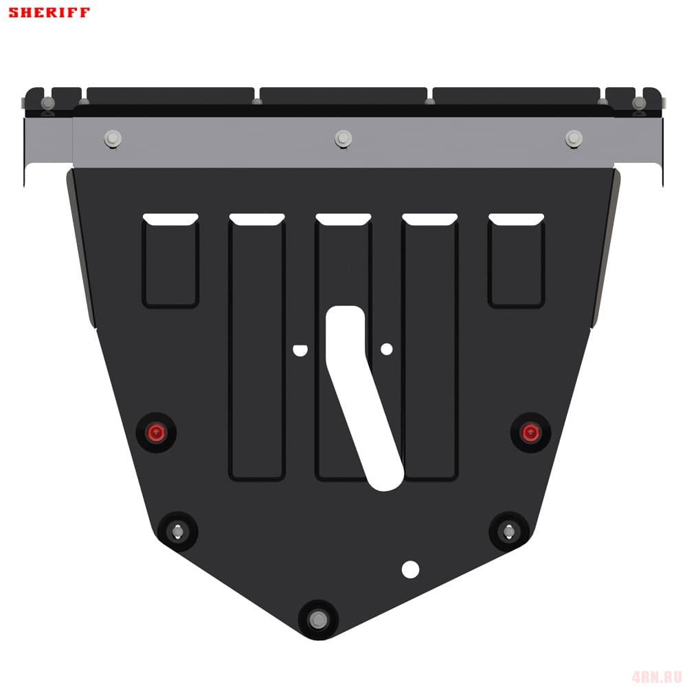 Защита картера Sheriff нужна для сохранности узлов и агрегатов, находящихся на днище авто. Она надежно защитит двигательный отсек вашей машины от повреждений. Также она защищает моторный отсек от влаги, грязи, и предусматривает наличие металлических крыльев, которые выполняют функцию пыльника.