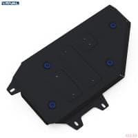Порошковое окрашивание гарантирует долгий срок службы. А глубокий штамп увеличивает жесткость до 2,5 раз. Также имеется утопленный крепеж для предотвращения срывов. Качественная покраска защиты картера выдерживает 720 часов соляного тумана. Толщина изделия составляет 2-6 мм. Подштамповка в местах крепления предохраняет крепеж от срезания. Деталь спроектирована индивидуально для вашего автомобиля, что позволяет устанавливать ее в штатные места без доработки кузова за 10 мин.