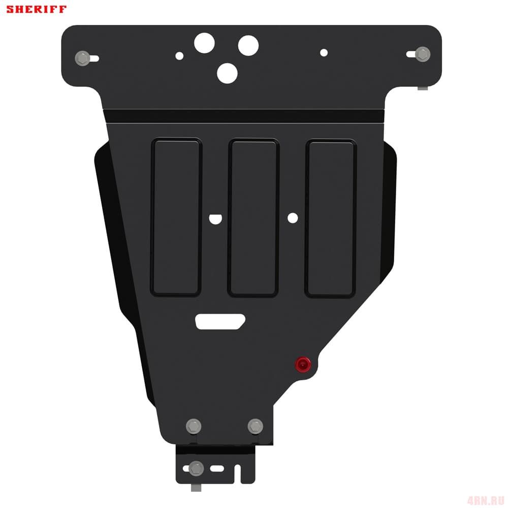 Защита картера Sheriff нужна для сохранности узлов и агрегатов, находящихся на днище авто. Она надежно защитит двигательный отсек вашей машины от повреждений. Также она защищает моторный отсек от влаги, грязи, и предусматривает наличие металлических крыльев, которые выполняют функцию пыльника.
