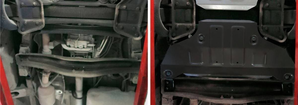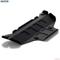 Порошковое окрашивание гарантирует долгий срок службы. А глубокий штамп увеличивает жесткость до 2,5 раз. Также имеется утопленный крепеж для предотвращения срывов. Качественная покраска защиты картера выдерживает 720 часов соляного тумана. Толщина изделия составляет 2-6 мм. Подштамповка в местах крепления предохраняет крепеж от срезания. Деталь спроектирована индивидуально для вашего автомобиля, что позволяет устанавливать ее в штатные места без доработки кузова за 10 мин.