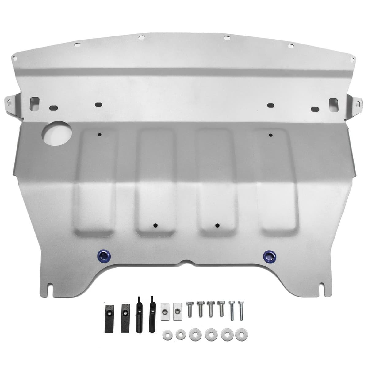 Стойкое порошковое окрашивание позволяет сохранить внешний вид, защитит от царапин, предотвратит коррозию. Также имеется утопленный крепеж для предотвращения срывов. Крепеж не образует с алюминием гальваническую пару. Защита спроектирована индивидуально для автомобиля, что позволяет устанавливать ее в штатные места без доработки кузова за 10 мин.