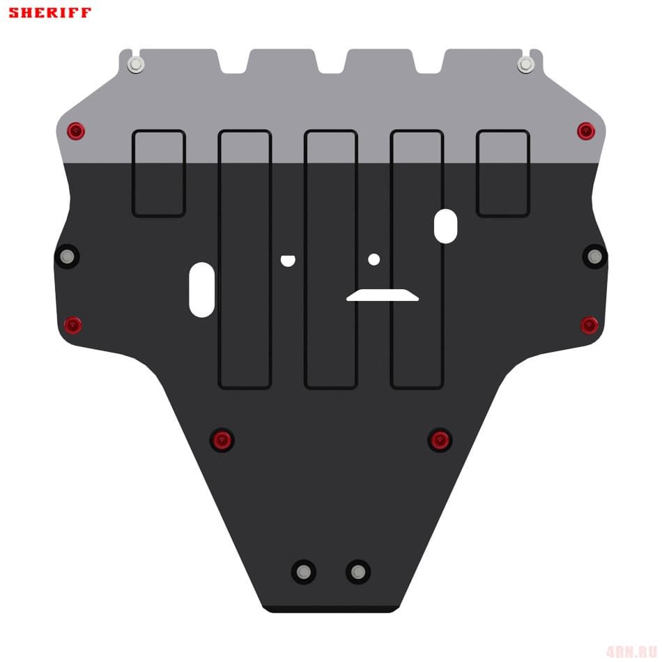 Защита картера Sheriff нужна для сохранности узлов и агрегатов, находящихся на днище авто. Она надежно защитит двигательный отсек вашей машины от повреждений. Также она защищает моторный отсек от влаги, грязи, и предусматривает наличие металлических крыльев, которые выполняют функцию пыльника.