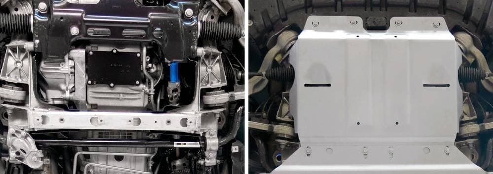 Стойкое порошковое окрашивание позволяет сохранить внешний вид, защитит от царапин, предотвратит коррозию. Также имеется утопленный крепеж для предотвращения срывов. Крепеж не образует с алюминием гальваническую пару. Защита спроектирована индивидуально для автомобиля, что позволяет устанавливать ее в штатные места без доработки кузова за 10 мин.