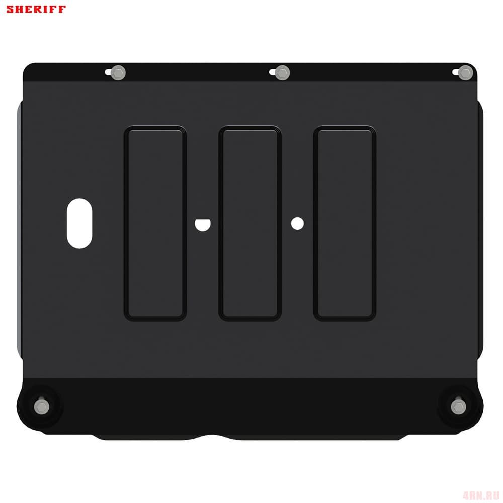 Защита картера Sheriff нужна для сохранности узлов и агрегатов, находящихся на днище авто. Она надежно защитит двигательный отсек вашей машины от повреждений. Также она защищает моторный отсек от влаги, грязи, и предусматривает наличие металлических крыльев, которые выполняют функцию пыльника.