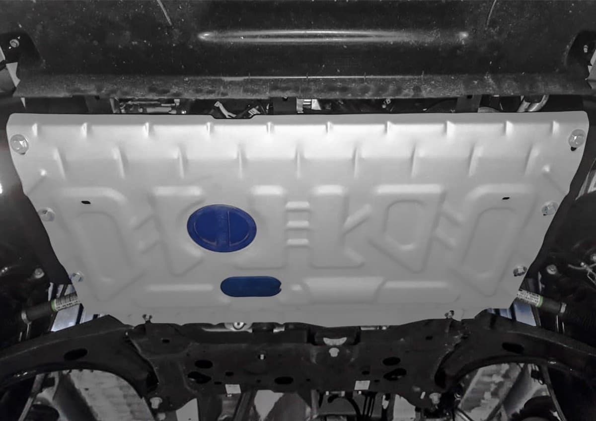 Стойкое порошковое окрашивание позволяет сохранить внешний вид, защитит от царапин, предотвратит коррозию. Также имеется утопленный крепеж для предотвращения срывов. Крепеж не образует с алюминием гальваническую пару. Защита спроектирована индивидуально для автомобиля, что позволяет устанавливать ее в штатные места без доработки кузова за 10 мин.