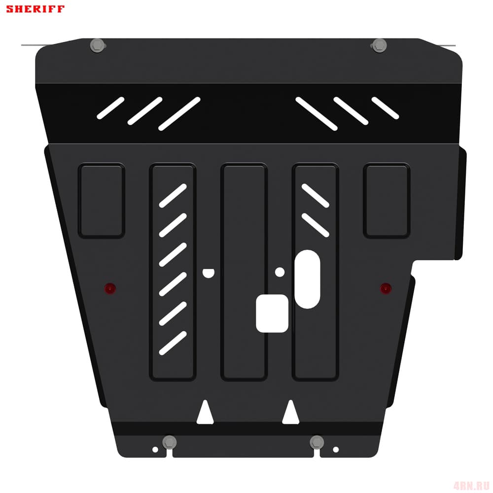 Защита картера Sheriff нужна для сохранности узлов и агрегатов, находящихся на днище авто. Она надежно защитит двигательный отсек вашей машины от повреждений. Также она защищает моторный отсек от влаги, грязи, и предусматривает наличие металлических крыльев, которые выполняют функцию пыльника.