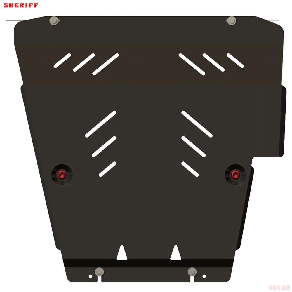 Защита картера Sheriff нужна для сохранности узлов и агрегатов, находящихся на днище авто. Она надежно защитит двигательный отсек вашей машины от повреждений. Также она защищает моторный отсек от влаги, грязи, и предусматривает наличие металлических крыльев, которые выполняют функцию пыльника.