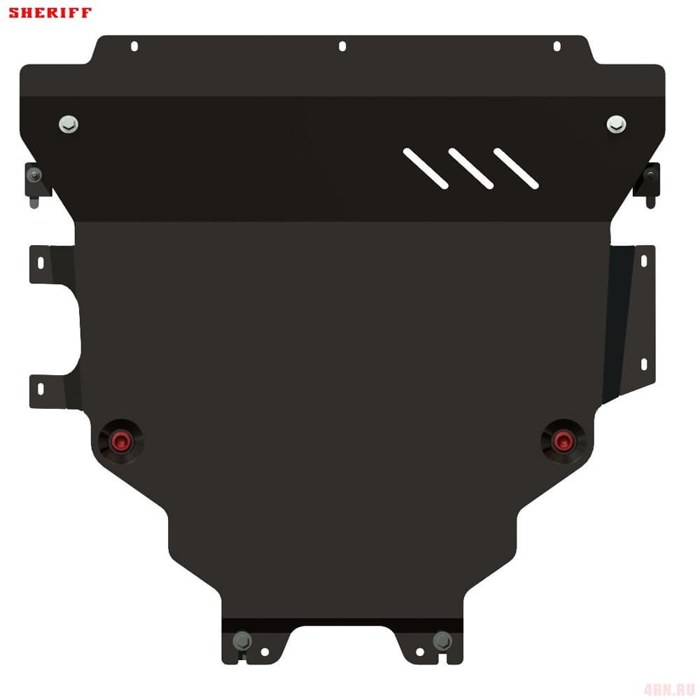 Защита картера Sheriff нужна для сохранности узлов и агрегатов, находящихся на днище авто. Она надежно защитит двигательный отсек вашей машины от повреждений. Также она защищает моторный отсек от влаги, грязи, и предусматривает наличие металлических крыльев, которые выполняют функцию пыльника.