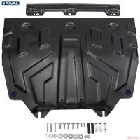 Порошковое окрашивание гарантирует долгий срок службы. А глубокий штамп увеличивает жесткость до 2,5 раз. Также имеется утопленный крепеж для предотвращения срывов. Качественная покраска защиты картера выдерживает 720 часов соляного тумана. Толщина изделия составляет 2-6 мм. Подштамповка в местах крепления предохраняет крепеж от срезания. Деталь спроектирована индивидуально для вашего автомобиля, что позволяет устанавливать ее в штатные места без доработки кузова за 10 мин.