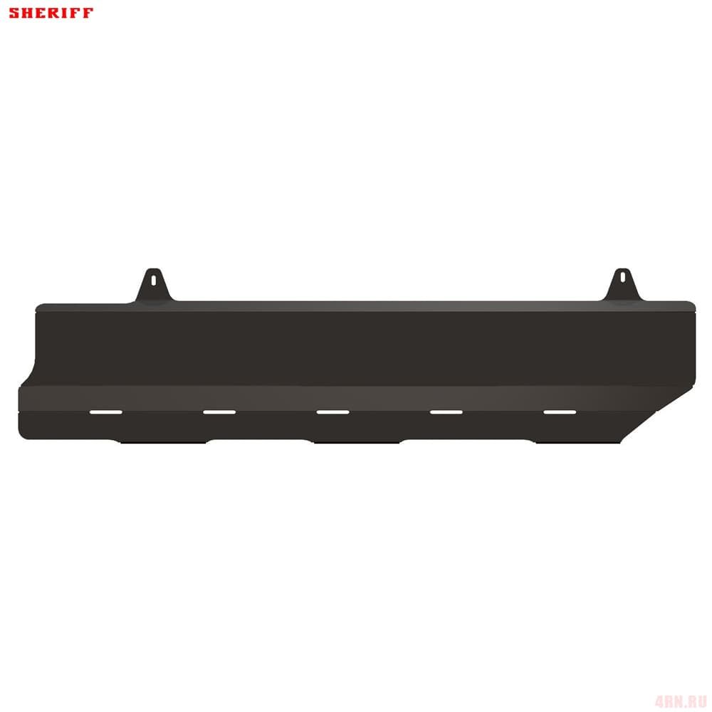 Защита картера Sheriff нужна для сохранности узлов и агрегатов, находящихся на днище авто. Она надежно защитит двигательный отсек вашей машины от повреждений. Также она защищает моторный отсек от влаги, грязи, и предусматривает наличие металлических крыльев, которые выполняют функцию пыльника.
