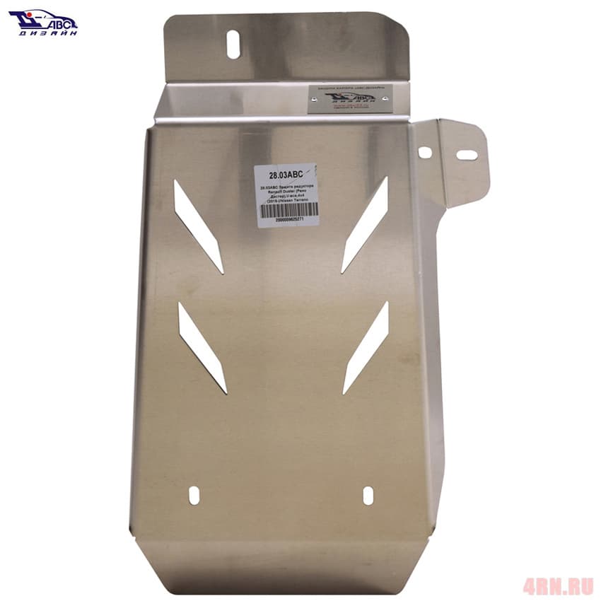 Алюминиевая защита редуктора с крепежом в комплекте, артикул 28.03ABC от российского производителя АВС Дизайн. Разработана специально для автомобиля Nissan Terrano 2014-2021.