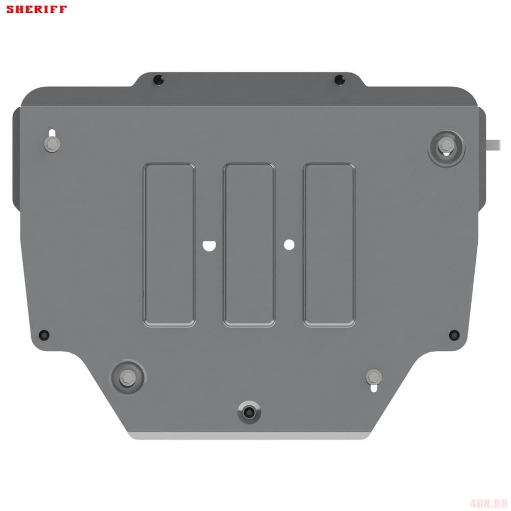 Защита картера Sheriff нужна для сохранности узлов и агрегатов, находящихся на днище авто. Она надежно защитит двигательный отсек вашего автомобиля от повреждений. Также она защищает моторный отсек от влаги и грязи, и предусматривает наличие металлических крыльев, которые выполняют функцию пыльника.
