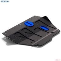 Порошковое окрашивание гарантирует долгий срок службы. А глубокий штамп увеличивает жесткость до 2,5 раз. Также имеется утопленный крепеж для предотвращения срывов. Качественная покраска защиты картера выдерживает 720 часов соляного тумана. Толщина изделия составляет 2-6 мм. Подштамповка в местах крепления предохраняет крепеж от срезания. Деталь спроектирована индивидуально для вашего автомобиля, что позволяет устанавливать ее в штатные места без доработки кузова за 10 мин.