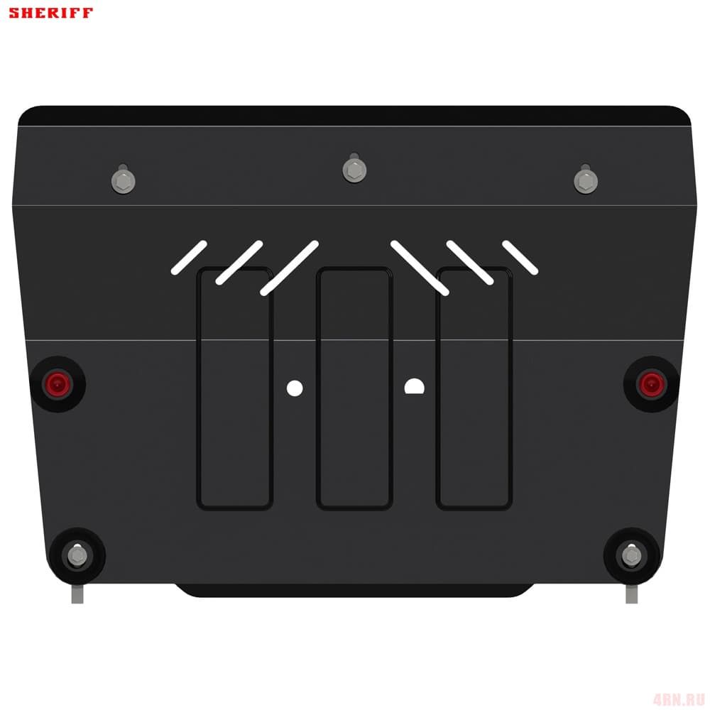 Защита картера Sheriff нужна для сохранности узлов и агрегатов, находящихся на днище авто. Она надежно защитит двигательный отсек вашей машины от повреждений. Также она защищает моторный отсек от влаги, грязи, и предусматривает наличие металлических крыльев, которые выполняют функцию пыльника.