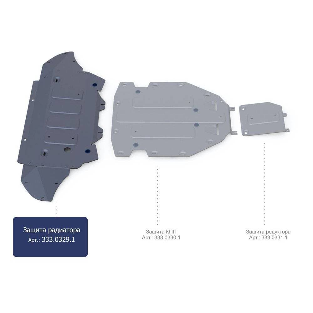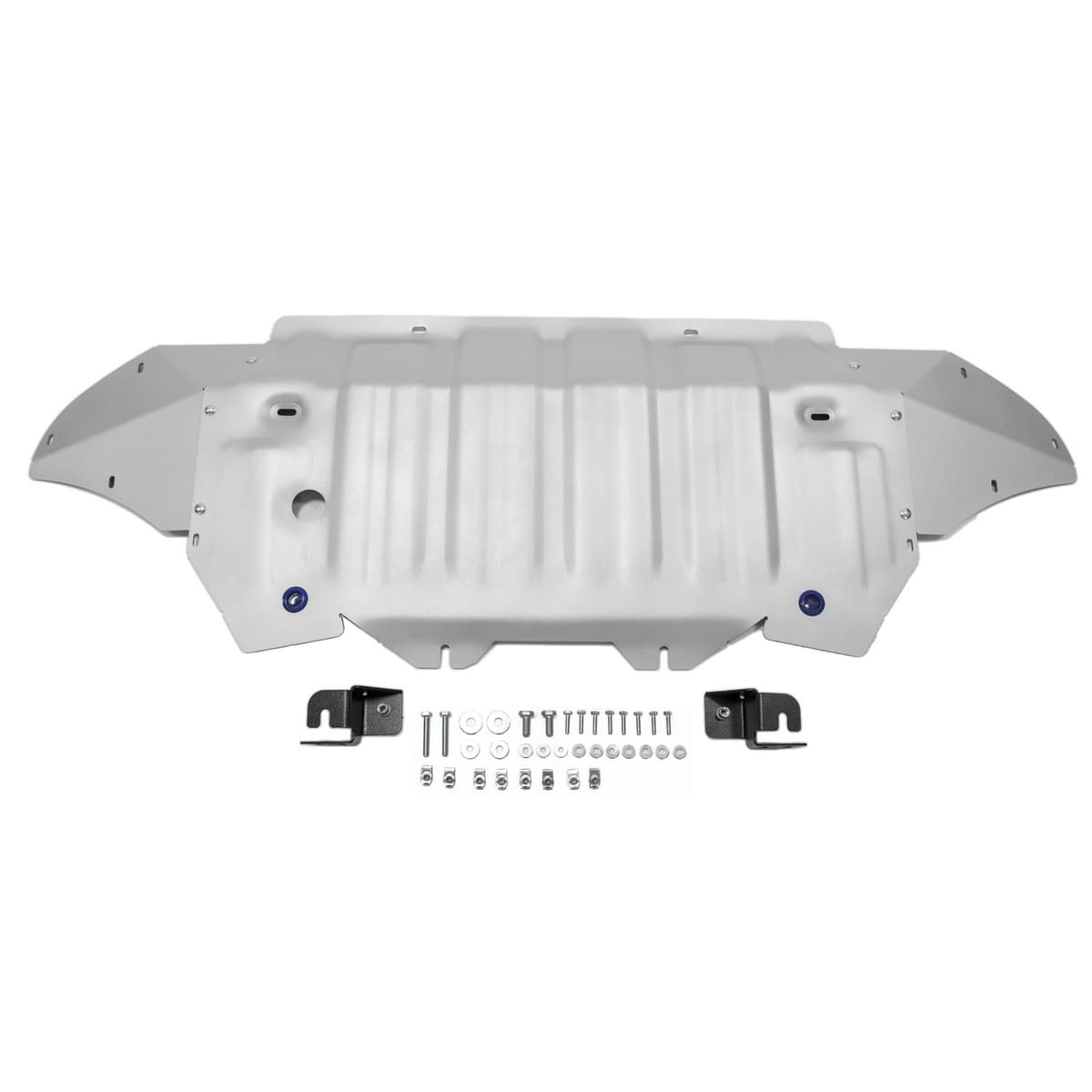 Стойкое порошковое окрашивание позволяет сохранить внешний вид, защитит от царапин, предотвратит коррозию. Также имеется утопленный крепеж для предотвращения срывов. Крепеж не образует с алюминием гальваническую пару. Защита спроектирована индивидуально для автомобиля, что позволяет устанавливать ее в штатные места без доработки кузова за 10 мин.