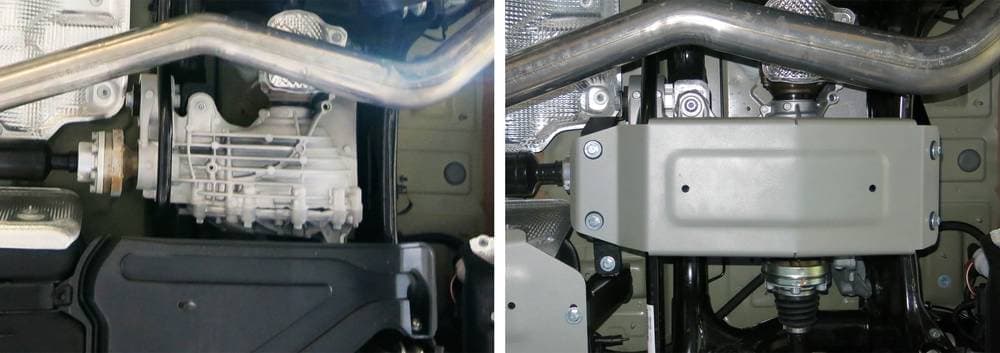Стойкое порошковое окрашивание позволяет сохранить внешний вид, защитит от царапин, предотвратит коррозию. Также имеется утопленный крепеж для предотвращения срывов. Крепеж не образует с алюминием гальваническую пару. Защита спроектирована индивидуально для автомобиля, что позволяет устанавливать ее в штатные места без доработки кузова за 10 мин.