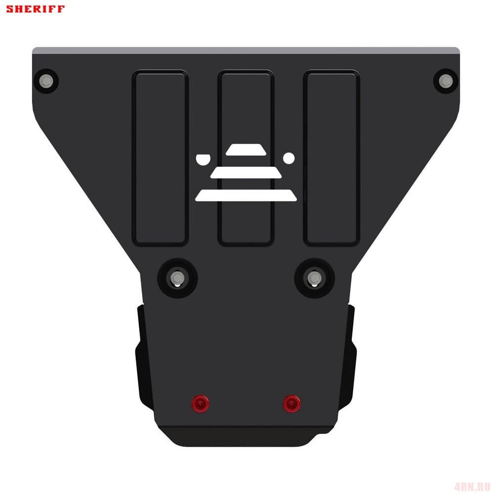 Защита картера Sheriff нужна для сохранности узлов и агрегатов, находящихся на днище авто. Она надежно защитит двигательный отсек вашей машины от повреждений. Также она защищает моторный отсек от влаги, грязи, и предусматривает наличие металлических крыльев, которые выполняют функцию пыльника.