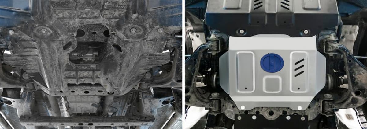 Стойкое порошковое окрашивание позволяет сохранить внешний вид, защитит от царапин, предотвратит коррозию. Также имеется утопленный крепеж для предотвращения срывов. Крепеж не образует с алюминием гальваническую пару. Защита спроектирована индивидуально для автомобиля, что позволяет устанавливать ее в штатные места без доработки кузова за 10 мин.