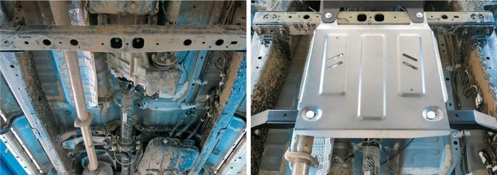 Стойкое порошковое окрашивание позволяет сохранить внешний вид, защитит от царапин, предотвратит коррозию. Также имеется утопленный крепеж для предотвращения срывов. Крепеж не образует с алюминием гальваническую пару. Защита спроектирована индивидуально для автомобиля, что позволяет устанавливать ее в штатные места без доработки кузова за 10 мин.