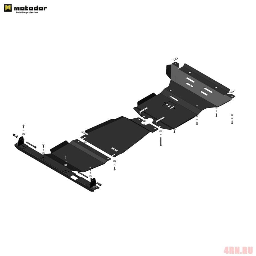 Защита двигателя и кпп, раздаточной коробки артикул 12519 от российского производителя Мотодор. Разработана специально для автомобиля Toyota Hilux 2015-2021. Крепеж поставляется в комплекте. Стали толщиной 3,0 мм достаточно для городских и загородных условий дорог.