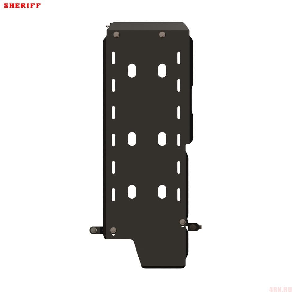 Защита картера Sheriff нужна для сохранности узлов и агрегатов, находящихся на днище авто. Она надежно защитит двигательный отсек вашей машины от повреждений. Также она защищает моторный отсек от влаги, грязи, и предусматривает наличие металлических крыльев, которые выполняют функцию пыльника.