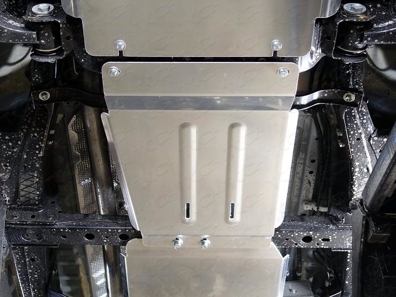Алюминиевая защита коробки передач артикул ZKTCC00031 от российского производителя ТСС. Подходит для Тойота Хайлюкс 2010-2015х годов выпуска. Защита состоит из одного листа и крепежа в комплекте, без отверстия для слива масла. Алюминия толщиной 4,0 мм достаточно для комфортного передвижения без опасений за автомобиль, вес ее 12 кг.