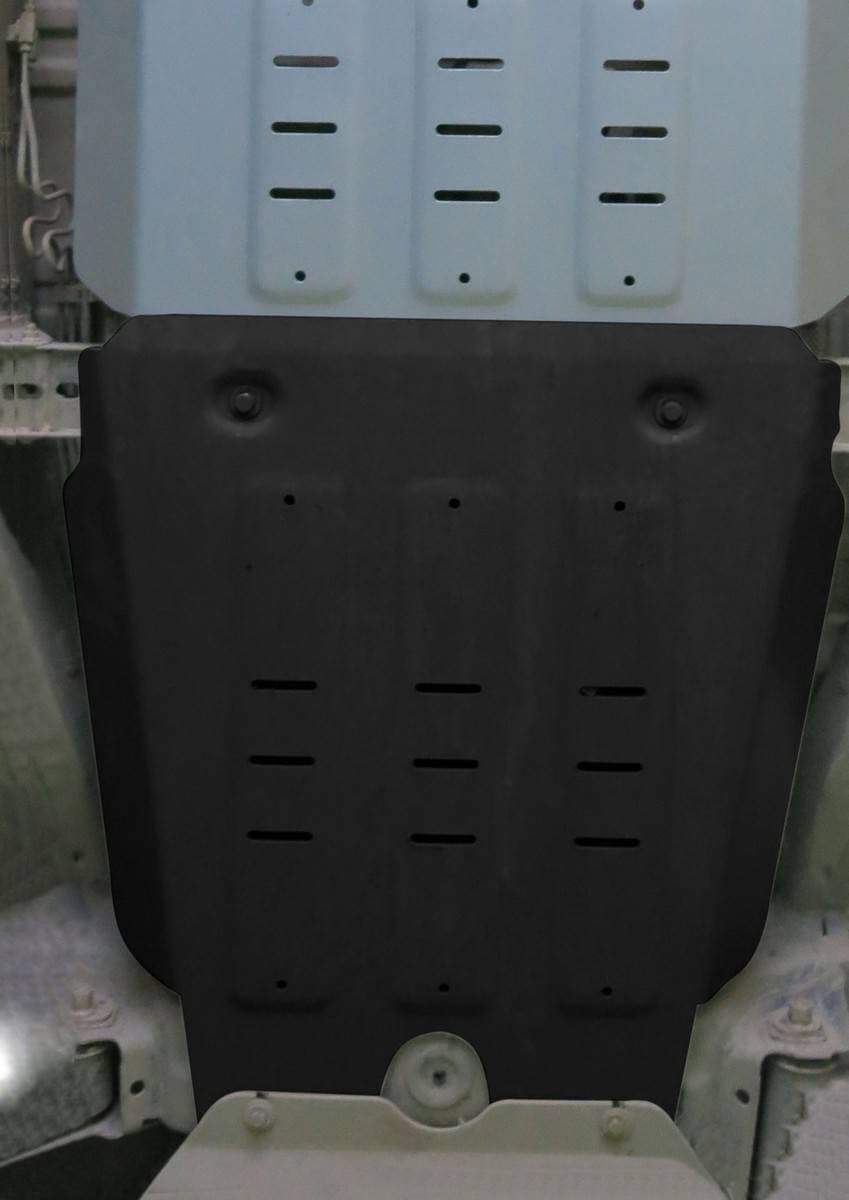 Порошковое окрашивание гарантирует долгий срок службы. А глубокий штамп увеличивает жесткость до 2,5 раз. Также имеется утопленный крепеж для предотвращения срывов. Качественная покраска защиты картера выдерживает 720 часов соляного тумана. Толщина изделия составляет 2-6 мм. Подштамповка в местах крепления предохраняет крепеж от срезания. Деталь спроектирована индивидуально для вашего автомобиля, что позволяет устанавливать ее в штатные места без доработки кузова за 10 мин.