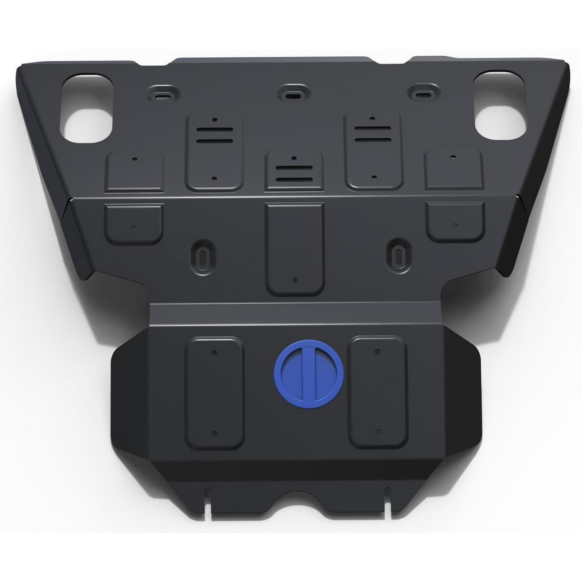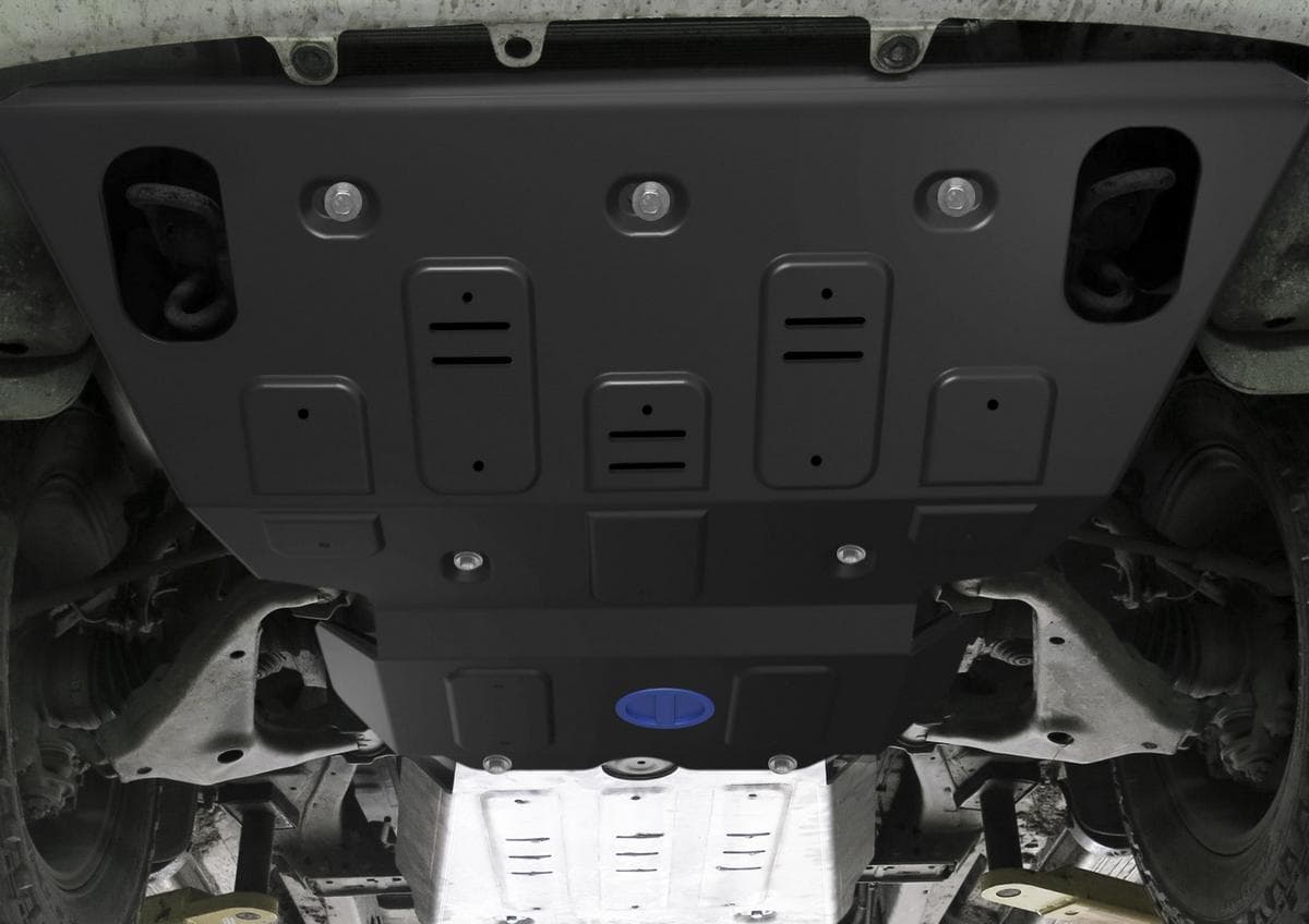 Порошковое окрашивание гарантирует долгий срок службы. А глубокий штамп увеличивает жесткость до 2,5 раз. Также имеется утопленный крепеж для предотвращения срывов. Качественная покраска защиты картера выдерживает 720 часов соляного тумана. Толщина изделия составляет 2-6 мм. Подштамповка в местах крепления предохраняет крепеж от срезания. Деталь спроектирована индивидуально для вашего автомобиля, что позволяет устанавливать ее в штатные места без доработки кузова за 10 мин.