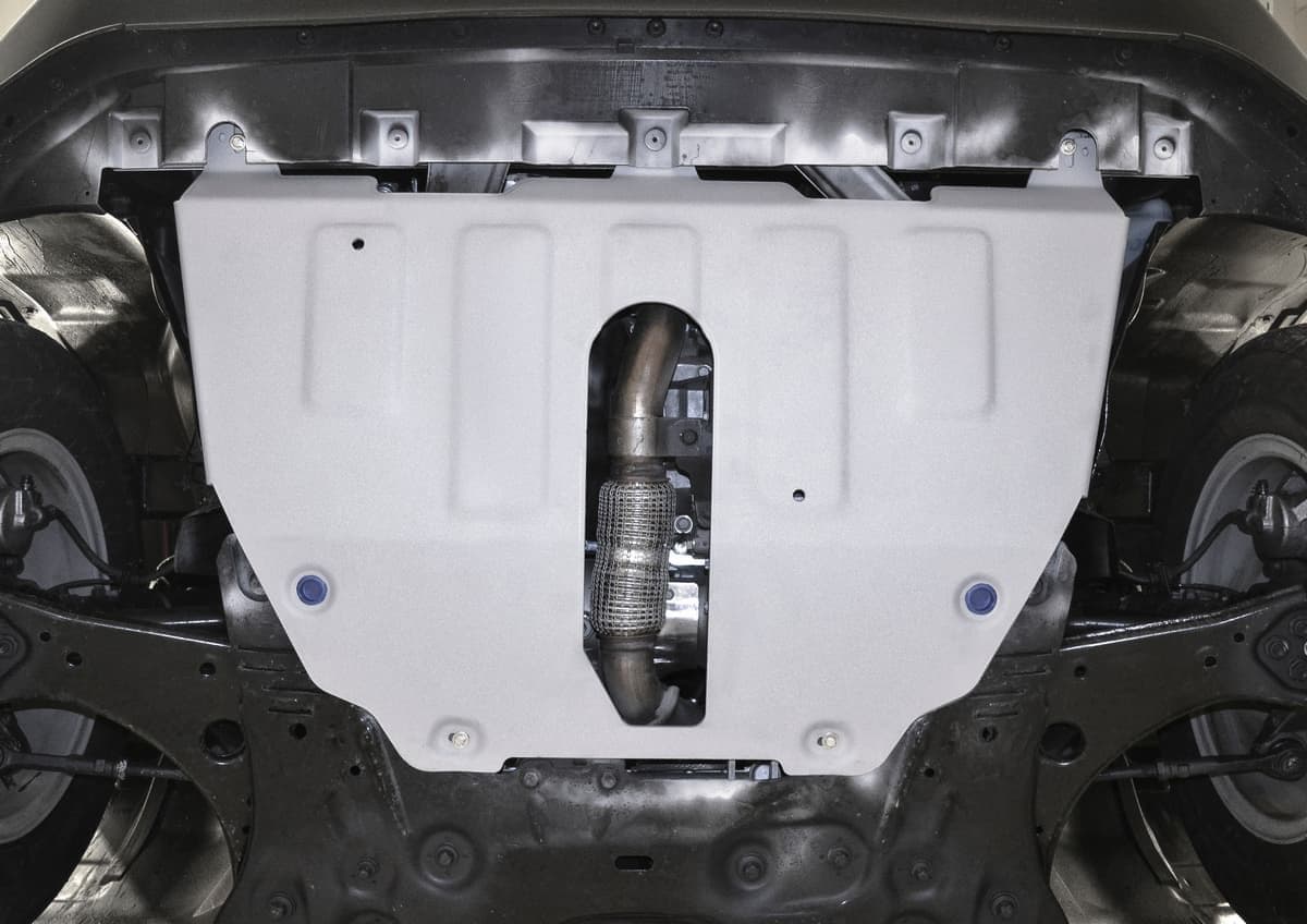 Стойкое порошковое окрашивание позволяет сохранить внешний вид, защитит от царапин, предотвратит коррозию. Также имеется утопленный крепеж для предотвращения срывов. Крепеж не образует с алюминием гальваническую пару. Защита спроектирована индивидуально для автомобиля, что позволяет устанавливать ее в штатные места без доработки кузова за 10 мин.