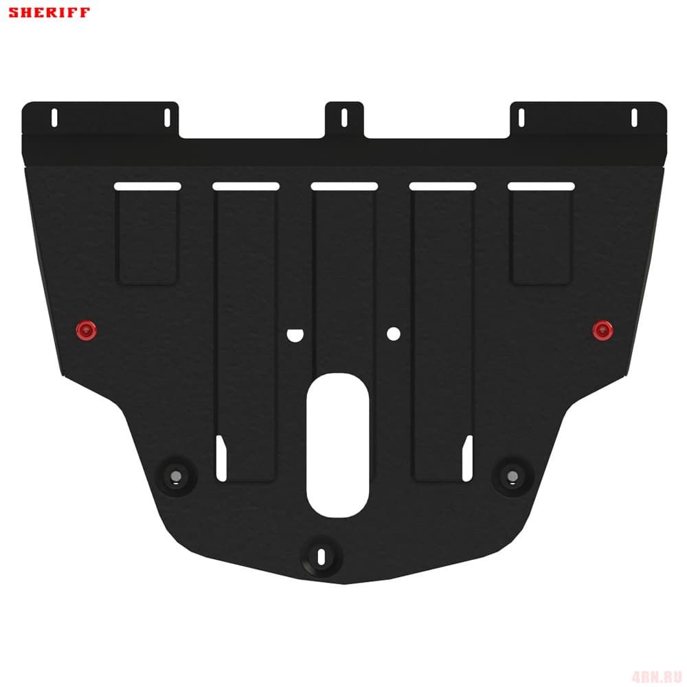 Защита картера Sheriff нужна для сохранности узлов и агрегатов, находящихся на днище авто. Она надежно защитит двигательный отсек вашей машины от повреждений. Также она защищает моторный отсек от влаги, грязи, и предусматривает наличие металлических крыльев, которые выполняют функцию пыльника.