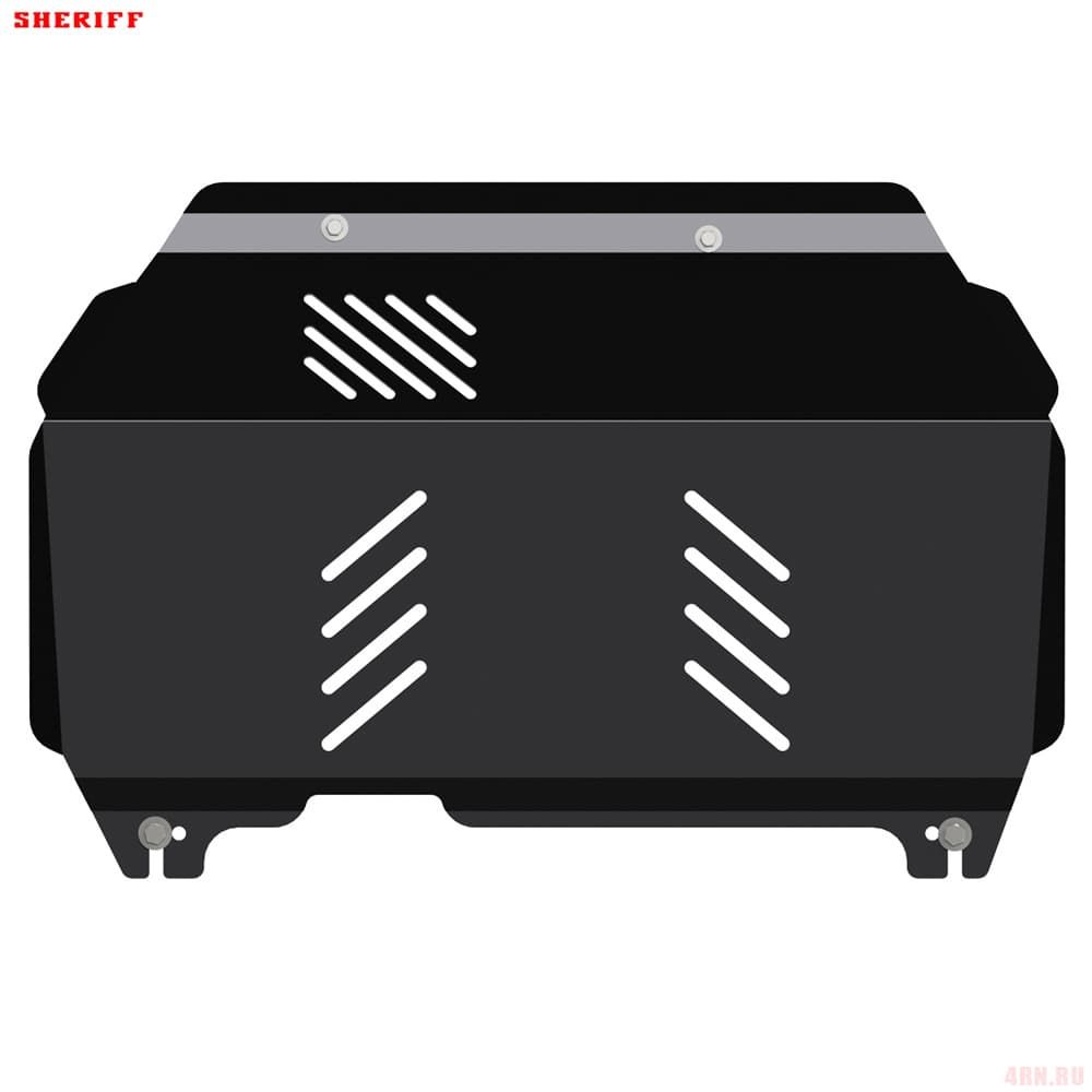 Защита картера Sheriff нужна для сохранности узлов и агрегатов, находящихся на днище авто. Она надежно защитит двигательный отсек вашей машины от повреждений. Также она защищает моторный отсек от влаги, грязи, и предусматривает наличие металлических крыльев, которые выполняют функцию пыльника.