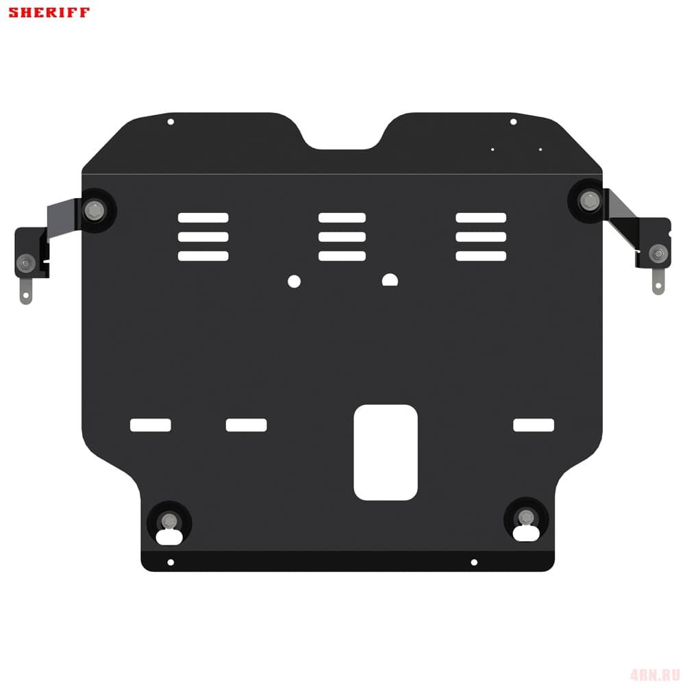 Защита картера Sheriff нужна для сохранности узлов и агрегатов, находящихся на днище авто. Она надежно защитит двигательный отсек вашей машины от повреждений. Также она защищает моторный отсек от влаги, грязи, и предусматривает наличие металлических крыльев, которые выполняют функцию пыльника.