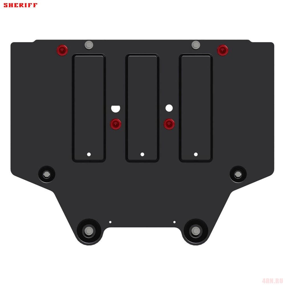 Защита картера Sheriff нужна для сохранности узлов и агрегатов, находящихся на днище авто. Она надежно защитит двигательный отсек вашей машины от повреждений. Также она защищает моторный отсек от влаги, грязи, и предусматривает наличие металлических крыльев, которые выполняют функцию пыльника.