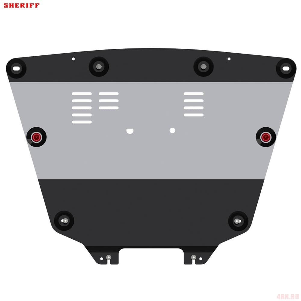 Защита картера Sheriff нужна для сохранности узлов и агрегатов, находящихся на днище авто. Она надежно защитит двигательный отсек вашей машины от повреждений. Также она защищает моторный отсек от влаги, грязи, и предусматривает наличие металлических крыльев, которые выполняют функцию пыльника.