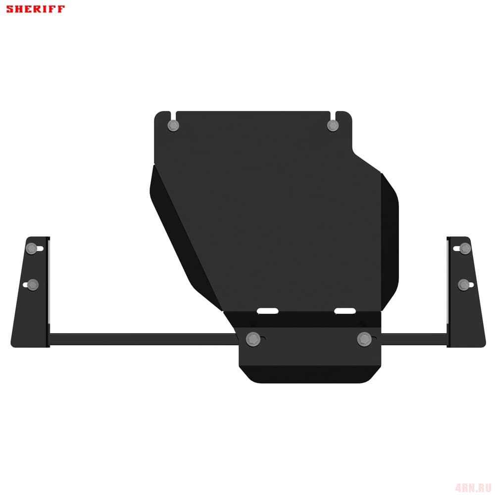 Защита картера Sheriff нужна для сохранности узлов и агрегатов, находящихся на днище авто. Она надежно защитит двигательный отсек вашей машины от повреждений. Также она защищает моторный отсек от влаги, грязи, и предусматривает наличие металлических крыльев, которые выполняют функцию пыльника.