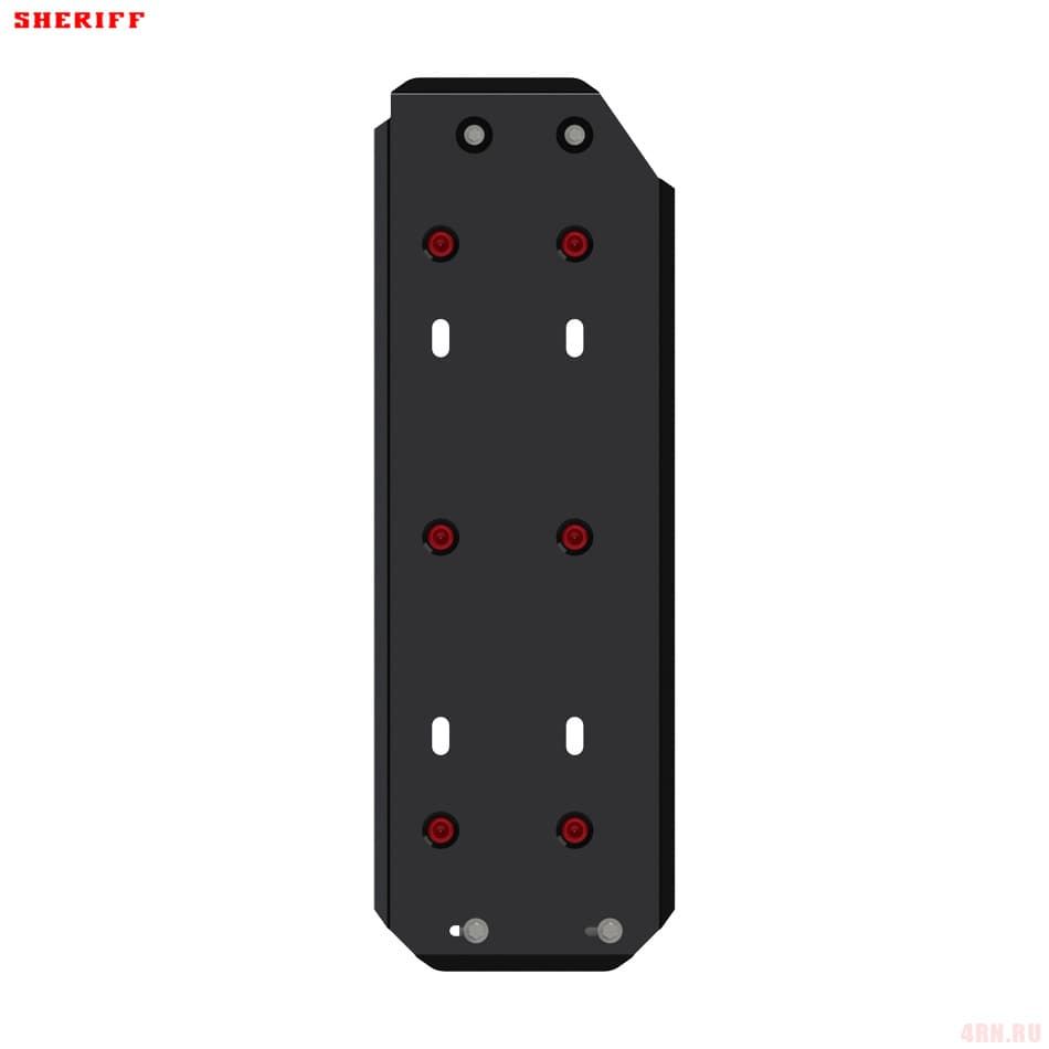 Защита картера Sheriff нужна для сохранности узлов и агрегатов, находящихся на днище авто. Она надежно защитит двигательный отсек вашей машины от повреждений. Также она защищает моторный отсек от влаги, грязи, и предусматривает наличие металлических крыльев, которые выполняют функцию пыльника.